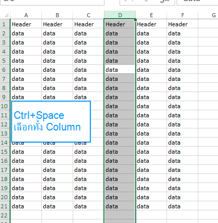หมายเหตุ : จากตรงนี้ หากเรากดอีก Ctrl+A อีกครั้ง ก็จะเป็นการเลือกทุก Cells ในชีทแทน