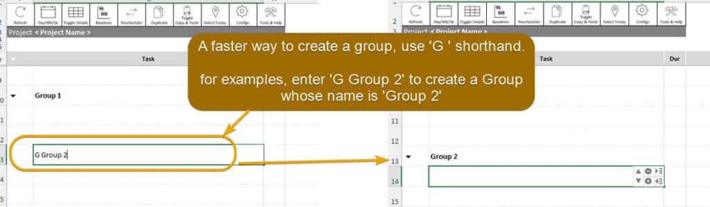 For example, if you want to create a group named ‘Group 2’, then you can type G Group 2 in the cell under the Task column. This way, you can skip step #1 – #2 entirely.