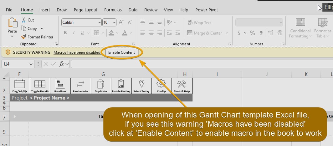 3. When opening the Gantt Chart Template file, if you see the Security Warning like in the following screenshot, then click Enable Content.